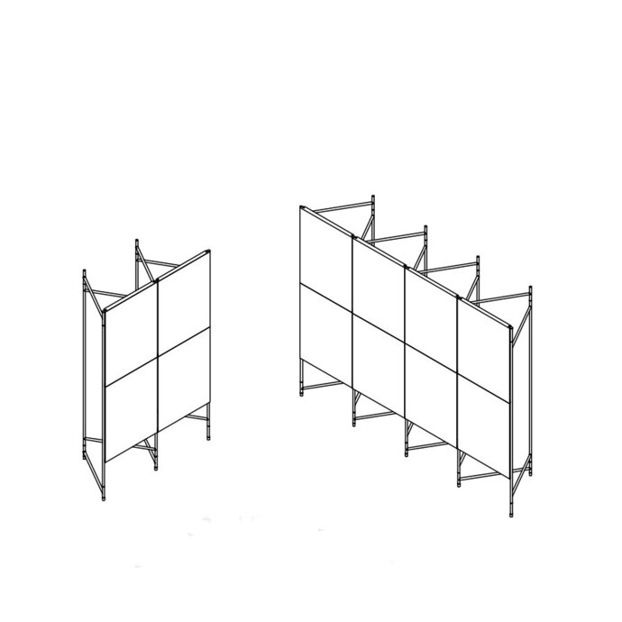 Die Flex-Aufstellung variiert in der Bestückung der Ausstellungstafeln (Projekte, Grafiken, usw.) nach individuellen Themenaspekten. Sie eignet sich als Aufsteller oder zur Schaufensterbespielung.