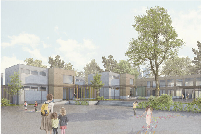 Die Universitätsstadt Gießen plant eine Sanierung und Erweiterung der Käthe-Kollwitz-Schule. Denn die 1968 eingeweihte Grundschule entspricht nicht mehr den aktuellen energetischen und pädagogischen Ansprüchen. Zudem werden aufgrund steigender Schülerzahlen sowie der Ausweitung des Ganztagsbetriebs weitere Räumlichkeiten benötigt.