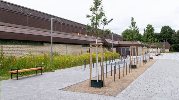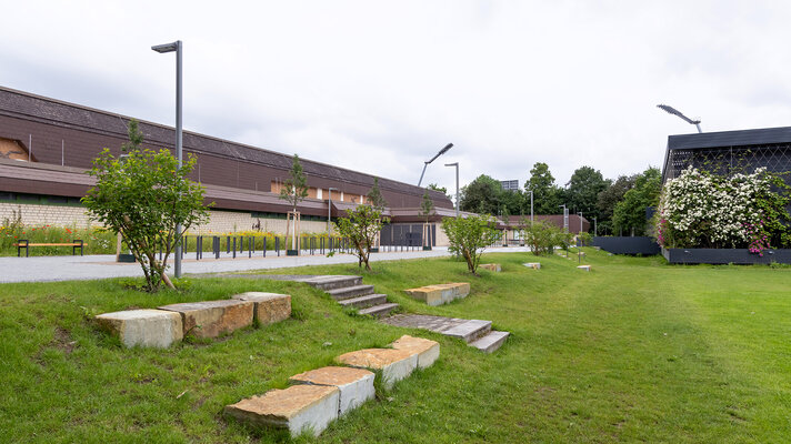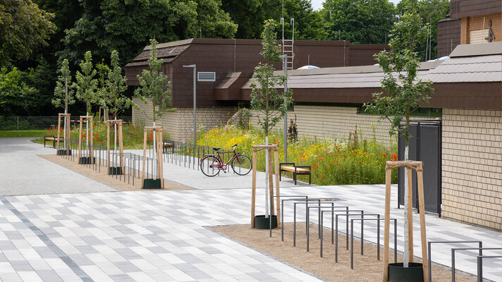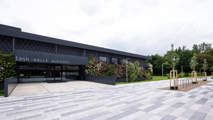 Nach der Fertigstellung der preisgekrönten task-Halle in der Kasseler Südstadt (habermann.decker.architekten PartG mbB) hat die Planungsgemeinschaft Landschaft + Freiraum die zugehörigen Außenanlagen gestaltet. Das Projekt zieht sich als langes Band um die Großsporthalle am Auepark und verbindet diese mit der neuen task-Halle. Neben funktionalen Aspekten wie Erschließung, Fahrradstellplätze und Flächen für die Feuerwehr stand eine ressourcenschonende und klimaangepasste Umsetzung im Vordergrund.