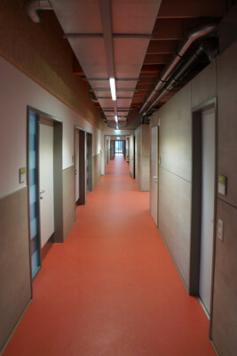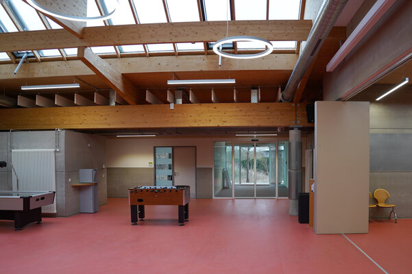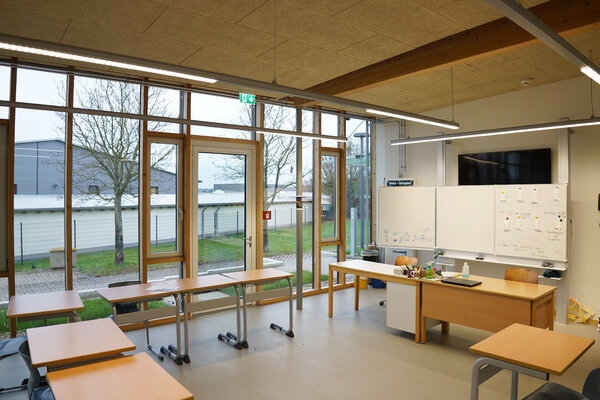 Bewahren und Umnutzen – unter dieser Prämisse haben wir das Werkstattgebäude von Architekturbüro Müntinga Puy GbR für die Förderstufe im berufsbildenden Bereich der Karl-Preising-Schule mit nur geringen Eingriffen in der Struktur umgebaut. Die nachhaltige Lüftungs- und Wärmetechnik sorgt im lichtdurchfluteten Gebäude bei Sonne und Schnee für ein gutes Klima. Durch die offene und robuste Lernumgebung mit vielfältigen Begegnungsflächen für Sport und Spiel wird das Haus ein Ort zum Wohlfühlen.