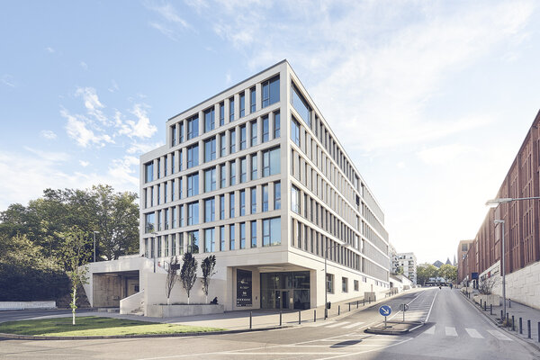 Das Projekt befindet sich in der Fischerstraße, unmittelbar hinter dem Einkaufszentrum “Lilien-Carré”. Als Neubebauung auf dem Bestandssockel wurden drei Gebäude geplant: 2 Punkthäuser als Wohnbebauung im Westen mit 43 Wohneinheiten und östlich hiervon ein riegelförmiges Bürogebäude für ca. 240 Arbeitsplätze. Beide Gebäude haben fünf oberirdische Geschosse. Im Mittelpunkt stehen die aufwändige Natursteinfassade sowie die begrünten Außenflächen als gelungene Einbindung in die städtebauliche Umgebung.