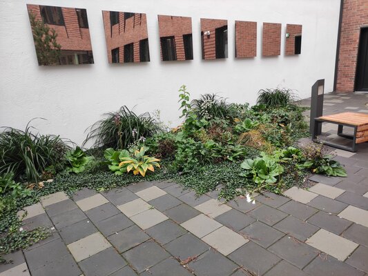 Im Zuge der Campuserweiterung der Hochschule Fulda entstanden für die Um- und Neubauten auf dem ehemaligen Areal der Mühle Heyl attraktive Freiflächen. Diese vermitteln zwischen der bestehenden historischen Bausubstanz und den Neubauten. Großzügige Möblierungselemente in den beiden Innenhöfen laden zum Lernen und Verweilen ein. Kiefern als charakteristische Baumart des gesamten Campus finden sich hier wieder. Ein Kunstwerk von Franz Erhard Walther ergänzt die Atmosphäre im kleinen Innenhof.