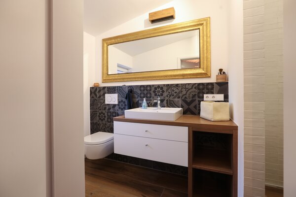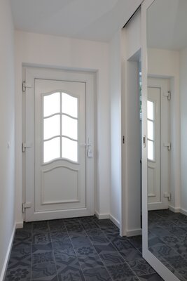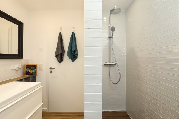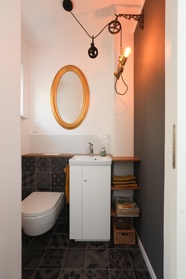 Die Doppelhaushälfte ist erst 20 Jahre alt und dennoch gab es bereits Änderungswünsche im Bezug auf Wandoberflächen, Bodenbelag, Badaustattung und Küchenanordnung. Desweiteren erwartete die Patchworkfamilie ein weiteres gemeinsames Kind und die Zimmeranordnung musste in diesem Zusammenhang neu gedacht werden. Durch geschickte Aufteilung entstand ein zusätzliches Zimmer, das nun gleichwertig ist und die ganze Familie glücklich macht.