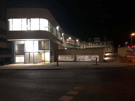 | Beteiligte Fach- und Ingenieurbüros | RÜTTGER u. HERBORG GmbH - Planungs- und Ingenieurbüro, www.ruettger-herborg.de REITZ und PRISTEL Ingenieurgesellschaft für Tragwerksplanung mbH, www.rp-tragwerk.de Döring Beratende Ingenieure GmbH, www.doering-tga.de Bakowies Reinhard & Sohn Ingenieurbüro für Versorgungstechnik, - |
