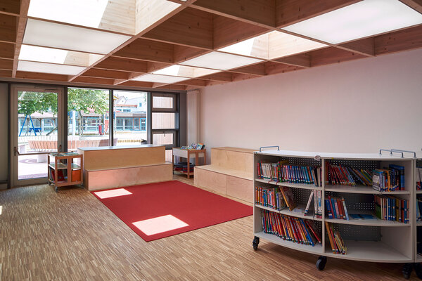 Die in die Jahre gekommene Hans Magiera Schule wird um 16 Klassenzimmer ergänzt. Ein Erweiterungsbau inkludiert außerdem Verwaltung, Mensa und Aula mit einem neuen Haupteingang. Vor dem neuen Haupteingang entsteht ein Platz, der auch als Spielbereich genutzt wird. Die Ausformung des Daches ermöglicht Oberlichter für eine optimale Belichtung und Belüftung. Garderoben und Zugänge werden durch die Ausbildung von Nischen und Vorzonen geschickt untergebracht.