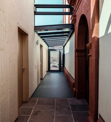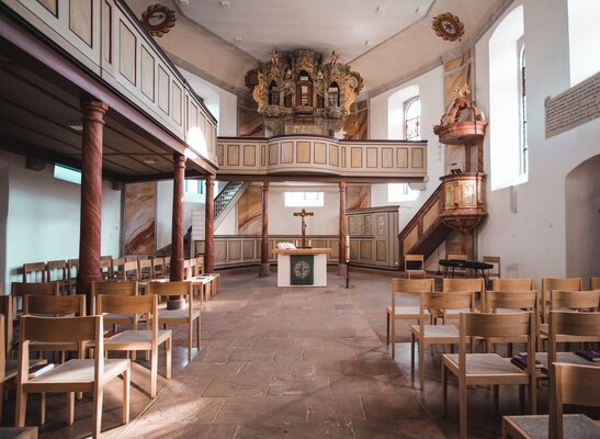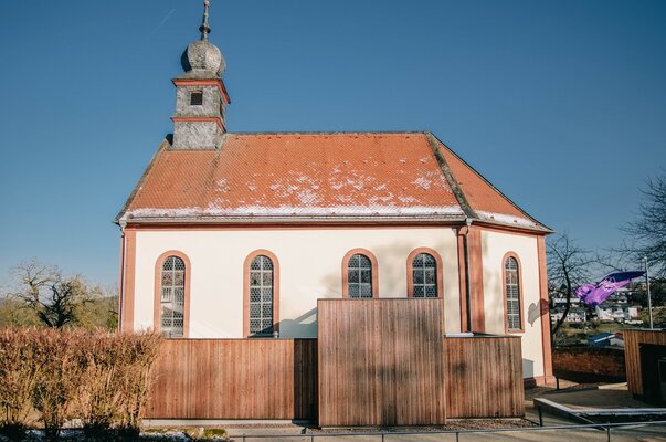 Die denkmalgeschützte Kirche befindet sich im Odenwald auf einem Bergrücken und wirkt präsent in ihre Gemeinde. Das historische Kirchengebäude wurde im Innenraum saniert und ein zuschaltbarer Gemeinderaum im Bestand integriert. Ergänzt wurde das Kirchengebäude an der Außenseite mit einem eingeschossigen Anbau. Dieser Holzbau beherbergt Sakristei, Teeküche, Sanitäranlagen und Haustechnik. Auch die Außenanlagen wurden neu angelegt, so dass der Gottesdienst auch im Freien gehalten werden kann.