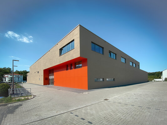 In zentraler Lage in Rotenburg a.d. Fulda entwickelt sich das moderne Feuerwehrgerätehaus u-förmig auf dem Grundstück. Der Innenhof wird als Alarm- und Betriebshof genutzt. Die maßgeblichen Entwurfsaspekte sind die Gewährleistung reibungsloser Abläufe im Betrieb und die Gestaltung nachhaltiger Baukörper. Die Farbgebung der Fassade harmoniert mit der umgebenden Bebauung und fügt sich gestalterisch in das Landschafts- und Stadtbild ein. Orangene Akzente erinnern an die typischen Dächer Rotenburgs.