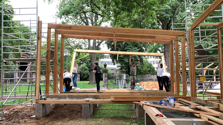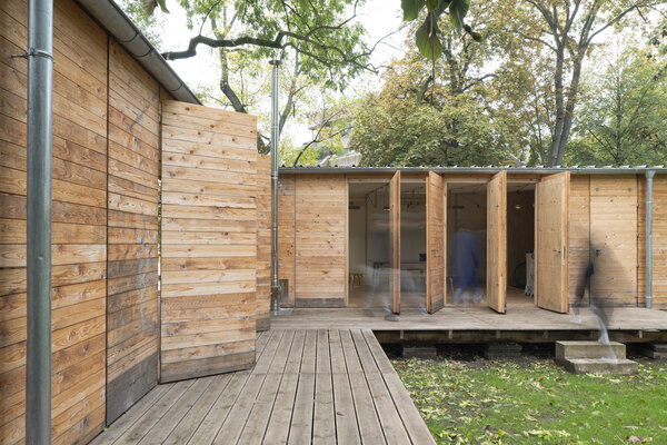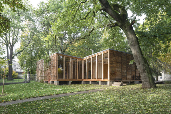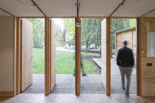 anspruchsvoller Räume für öffentliche Veranstaltungen. Studierende des Fachgebiets Architekturtheorie und Entwerfen der Universität Kassel haben das modulare Gebäude geplant und im Selbstbau realisiert.