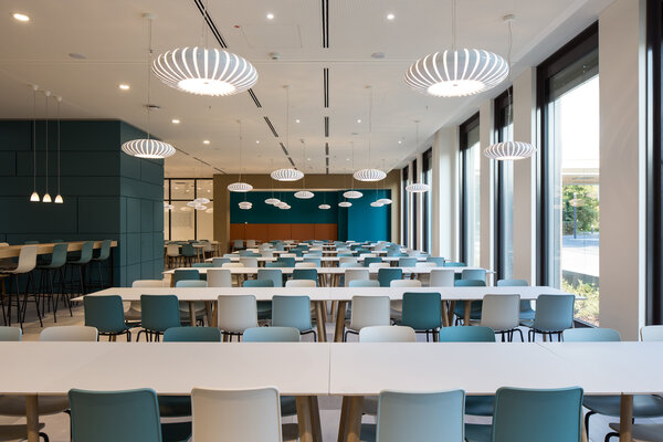 Die Frankfurt School of Finance and Management ist eine private Wirtschaftsuniversität, deren Neubau Zeichen setzt. Das Gebäude bezieht sich städte-baulich auf den Vorgänger, die ehemalige OFD. Der Entwurf von Henning Larsen prägt den Standort nicht zuletzt durch die Fassade, deren Ausführung in Zusammenarbeit mit dem Frankfurter Büro MOW auf den Genius Loci abgestimmt wurde. Mit der Innenarchitektur schlägt MOW eine Brücke zwischen dem Wirtschaftswunder und der modernen Lehre im 21. Jahrhundert.