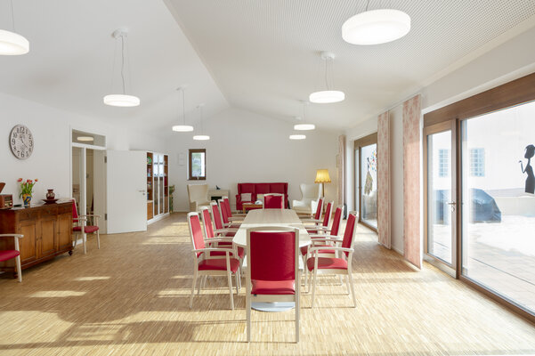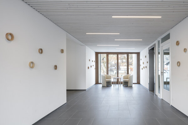 Die örtliche Kirchengemeinde und eine Tagespflegeeinrichtung für Senioren schließen sich zu einem Pilotprojekt zusammen. Ziel ist es, räumliche und funk-tionale Synergien mit einem Neubau im dörflichen Kontext herzustellen. Um der städtebaulichen Struktur und dem vielfältigen Raumprogramm gerecht zu werden, wird ein Ensemble aus differenzierten Freiräumen mit zwei Baukörpern umgesetzt. Die Bauten sind monolithisch ohne Wärmedämmung konstruiert und im Detail handwerklich anspruchsvoll ausgeführt.