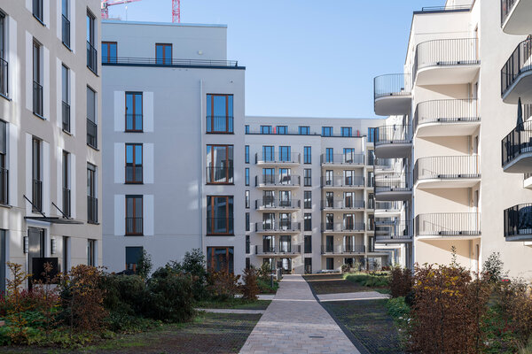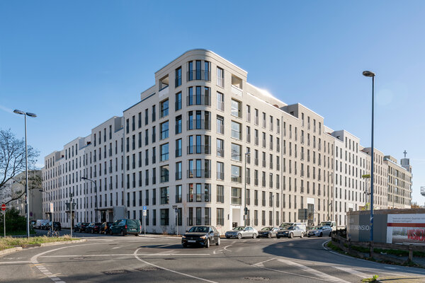 Mit dem Goethequartier in Offenbach am Main entsteht auf der langjährigen Brache ein städtisches Wohnquartier mit Gewerbeflächen, Läden, Gastronomie und Kindertagesstätte. Die 327 Wohneinheiten mit fünf bis sieben Geschossen umfassen 27.300 Quadratmeter Wohnfläche sowie 6.000 Quadratmeter Gewerbe und zwei Tiefgaragen mit 274 Stellplätzen. Das Ensemble besteht aus einer geschlossenen Blockrandbebauung aus sechszehn Häusern und einem Innenhof, in dem sich neben großzügigen Grün- und Spielflächen sieben freistehende Stadtvillen befinden.