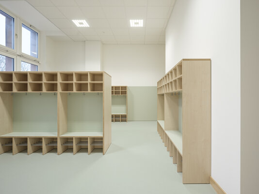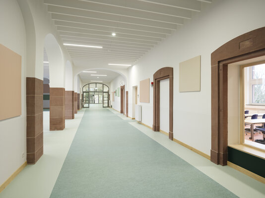 Durch die umfassende Sanierung und Umnutzung eines historischen Schulgebäudes entstand eine moderne und ganztagsfähige Grundschule für rund 300 Kinder. Historische Bauelemente wurden freigelegt und mit zeitgemäßen Lernlandschaften, flexiblen Unterrichtsräumen sowie Bereichen für Nachmittagsbetreuung, Verwaltung, Bibliothek und Aula kombiniert. So entstand ein funktionaler und inklusiver Lernort, der eine zeitgemäße, kindgerechte Atmosphäre mit dem Charakter der alten Bausubstanz vereint.