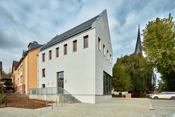 Für das neue Dekanat „Büdinger Land“ in Nidda entstand ein dreigeschossiger Erweiterungsbau zum bestehenden „Haus der Kirche“. In der Eingangsebene befinden sich ein zweigeschossiger Saal, Nebenräume, eine Küche und ein barrierefreies WC. Die beiden Obergeschosse dienen der Erweiterung der Büroflächen und Besprechungsräume. Der Dachraum wird als Archiv genutzt. Das in Massivbauweise erstellte Gebäude erhält ein steiles der historischen Bebauung entsprechendes Satteldach. Die Fassade in Putz-Besenstrich und Eichefenster komplettieren das Bild.