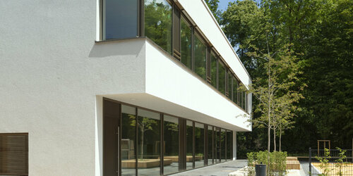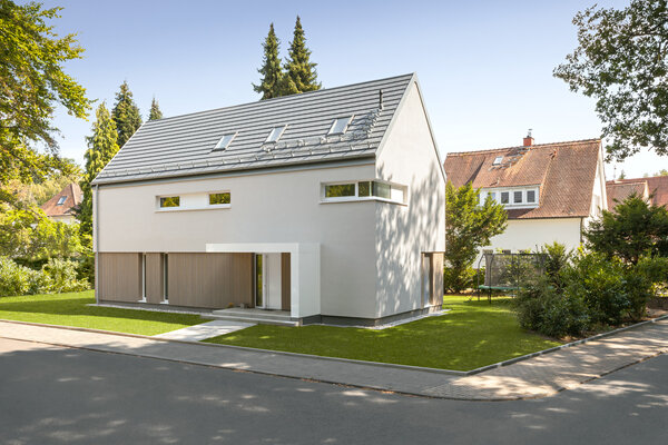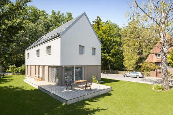 In der Villenkolonie Buchschlag, ein städtebauliches Denkmal aus dem 20. Jahrhundert, entstand ein modernes kompaktes Wohnhaus für eine Familie. Unter Berücksichtigung der nah gelegenen Bahnlinie sowie einer Ge-staltungssatzung aus den 1980er Jahren haben wir charakteristische Merkmale dieser Musterkolonie aufgenommen und interpretiert. Konzipiert wurde ein einfaches Langhaus mit einem Sockel und steilem Satteldach sowie einer feingliedrigen Holzverkleidung, Putzoberflächen und einem Eingangselement.