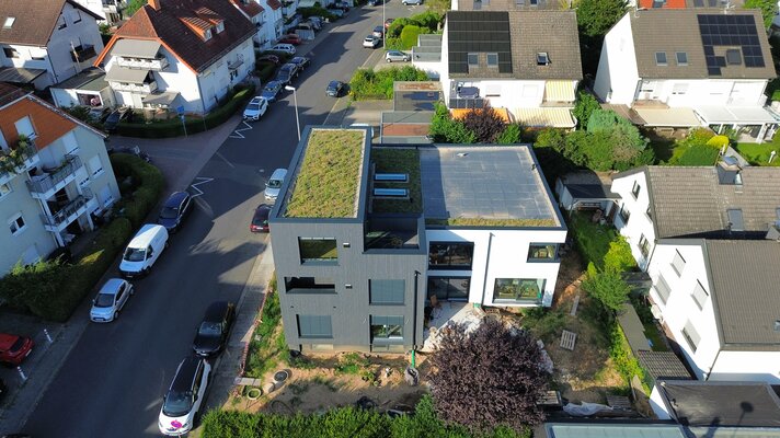 Das Projekt Haus K steht für Nachverdichtung statt Neubau. Es transformiert ein Einfamilienhaus aus den 1980er-Jahren in Kriftel zu einem nachhaltigen Mehrgenerationenhaus mit drei Wohneinheiten. Durch die energetische Sanierung und einer Erweiterung in Holzhybridbauweise entstanden im Haus-im-Haus-Konzept individuell angepasste Wohnräume der beiden Brüder mit Familien und deren Mutter. Das Gebäude erreicht den KfW-40-EE-Standard und verfügt über eine Photovoltaik-Anlage, Wärmepumpe sowie Regenwassernutzung.