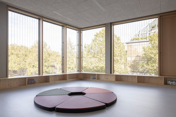 „Es braucht ein ganzes Dorf, um ein Kind großzuziehen…“. Entsprechend dieses afrikanischen Sprichworts sind die ökologisch geplante Kita, Grundschule und Sporthalle als 3 Bausteine um einen zentralen „Dorfplatz“ angeordnet. Die fein abgestufte räumliche Verzahnung mit dem umgebenden Stadtraum ermöglicht die Mehrfachnutzung der schulischen Freiflächen als öffentliche Aufenthalts- und Spielfläche.