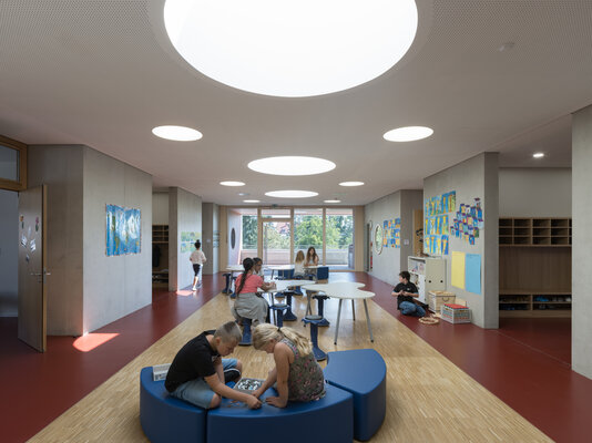 Auf dem Schulcampus an der Schaumburger Straße in Frankfurt-Sossenheim ist ein Neubau für die vierzügige Henri- Dunant-Grundschule entstanden. Der Entwurf folgt dem Leitbild „Schule als Lebensraum“. Neben den Räumen für den Schulbetrieb sind Aufenthaltsmöglichkeiten für Lernen und Freizeit außerhalb des Unterrichts geschaffen worden.
