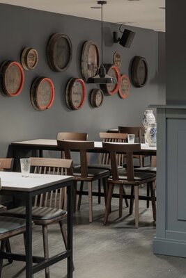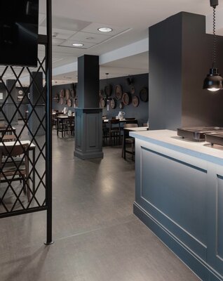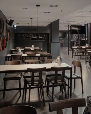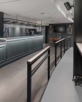 Im Stadion Deutsche Bank Park befand sich eine in die Jahre gekommene VIP-Loge. Diese wurde unter dem Deckmantel einer gehobenen Apfelweinwirtschaft umgebaut. Die Theke wurde erneuert und durch eine neu gesetzte Öffnung in einer tragenden Innenwand umstrukturiert. Das Ergebnis ist ein Innenraum, der vom Caterer optimal bespielt werden kann und den Besuchern durch einen Stehbereich und einem klassischeren Gastraum verschiedene Aufenthaltsqualitäten bietet.
