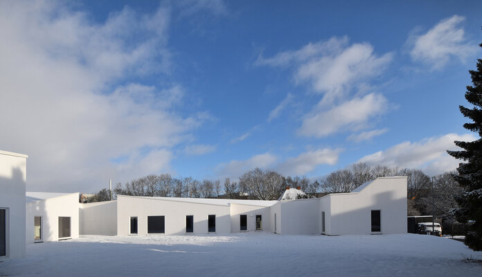 Die Kinder- und jugendpsychiatrische Tageseinrichtung in Korbach besteht aus drei Bereichen: einer Ambulanz, einer Tagesklinik mit 15 Plätzen und einer kleinen Schule des Landeswohlfahrtsverbandes Hessen. Der skulpturale Neubau formt sich hufeisenartig um einen begrünten Innenhof, der als Gemeinschaftsfläche für die Einrichtung und die Nachbarschaft dient. Das lebendige Dach spiegelt sich innen in den Raumformen wider und schafft dadurch eine helle und freundliche Atmosphäre für die Patienten.