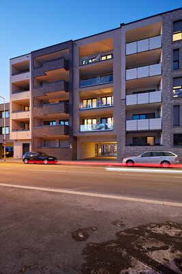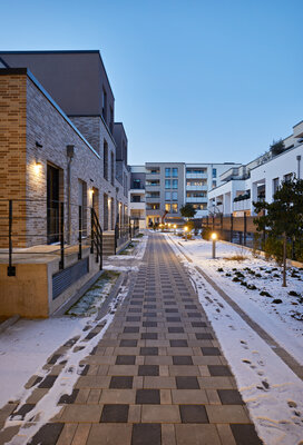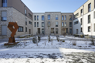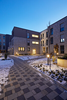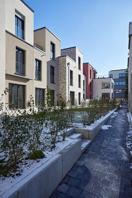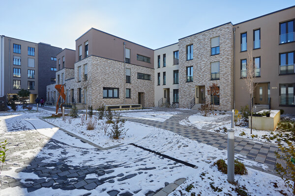 Inmitten der Darmstädter Innenstadt als Teil des Sanierungsgebiets Mollerstadt entstand ein neues städtisches Wohnquartier mit einem breiten Wohnungsmix. Nach außen hin schließt der Neubaukomplex den Blockrand und kreiert im Inneren einen lebendigen, parkähnlichen Innenhof mit Stadthaus. Mit einer vielfältigen Materialwahl und einer sensiblen Gebäudestaffelung nimmt dieser Bezug zur Geschichte des Baugrundstücks und würdigt den historischen Charakter der Kleinschen Höfe.