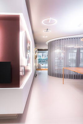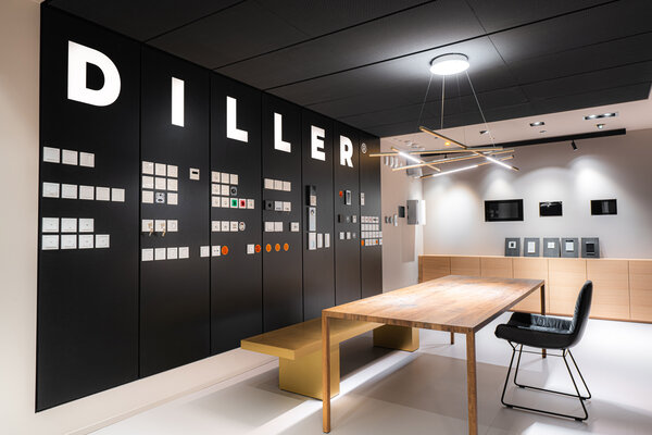 Der neu geschaffene Ausstellungsbereich für Leuchten und Lichtkonzepte zeigt, wofür Diller steht, eine perfekte Lichtinszenierung. Er verdeutlicht den Zauber und die Wirkung von Licht in einem fließenden, beweglichen Raumkonzept mit runden Präsentationsinseln zur Inszenierung von Leuchten. Die äußeren Randbereiche des T-förmigen Grundrisses dienen Funktionen wie Besprechungen und Mitarbeitern während die Mitte weich und immer wieder veränderbar den Leuchten eine Bühne bietet.