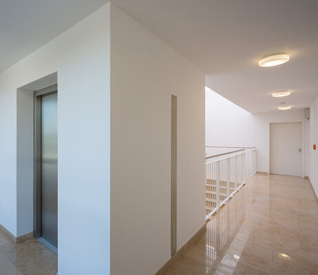 Bei dem Mehrfamilienhaus (LP 1-4 Heinrich Lessing Architekten, LP 5-8 Bielak Architekten & Bauingenieure) sind 16 öffentlich geförderte Wohnungen um ein natürlich belichtetes, innenliegendes Treppenhaus gruppiert. Die Wohnungen sind für 2 bis 3 Personen konzipiert, verfügen jeweils über eine Loggia und wurden ausnahmslos barrierefrei ausgeführt. Das Haus verfügt über einen hohen energetischen Standard mit einem kontrollierten Lüftungssystem mit Wärmerückgewinnung und Dreifachverglasungen.