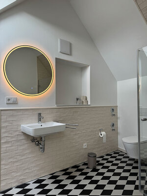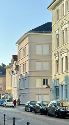 Hier verschmelzen moderner Wohnkomfort und der Charme eines historischen Bauwerks aus dem 19. Jahrhundert. Das nach Süden ausgerichtete, viergeschossige Wohnhaus wird von natürlichem Licht durchflutet und fügt sich harmonisch in den Genius Loci des Martinsviertels ein. Die Gesimse nehmen historische Bezugskanten auf, während die abgerundete Ecke eine sanfte, unaufdringliche Einfügung in den städtebaulichen Kontext ermöglicht. Tradition und Innovation vereinen sich zu einem exklusiven Wohnambiente.