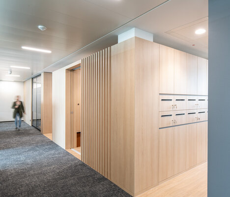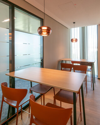 Vielfältige Arbeitswelten: Im neuen Verwaltungsgebäude NEO ist hybrides Arbeiten als neuen Standard etabliert. Es zählt, Zusammenarbeit, Vernetzung, Kommunikation und Interaktion. Umgesetzt wurde dies in sieben unterschiedlichen Bürowelten, für vielfältiges, menschenzentriertes arbeiten, hell und lichtdurchflutet. Die eigenständige Gestaltung der vorgestellten Licht- Fassade gibt dem Neubau einen eigenen Charakter und trägt zur Identifikation der Mitarbeiter zu ihrer neuen Arbeitswelt bei.