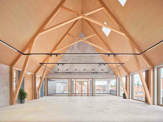 Das Rathaus aus 1377 wurde in den 1970er Jahren durch einen zeittypischen Anbau erweitert. Funktional und städtebaulich irreparable, wurde der Rückbau beschlossen. Der Erweiterungsbau bindet das historische Rathaus baulich ein, legt historische Sichtbezüge frei und leistet so einen Beitrag zur nachhaltigen Stadtreparatur. In einem modellhaften Projekt wird der Beton recycelt und wiederverwendet. Dem Urban-Mining-Gedanken folgend, werden möglichst reine, ressourcenschonende Baustoffe verarbeitet.