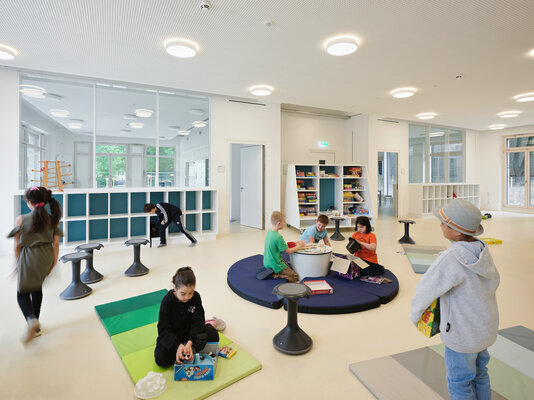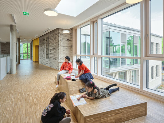 Das pädagogische Konzept der eigenständigen, jahrgangsübergreifenden Lerngruppen spielte bei der Architektur der Römerstadtschule eine wesentliche Rolle. In vier Häusern lernen die Kinder von Klasse eins bis vier gemeinsam in einer Lerngruppe und ohne Klassenraum. Das „Forum“ in der Mitte funktioniert als eine Art öffentlicher Dorfplatz. Es verbindet alle Häuser und Ebenen miteinander, weitere allgemein genutzte Bereiche, wie Mensa und Bibliothek, sind dort als Teil des Forums angegliedert.