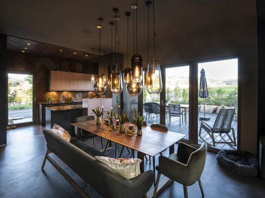 Die 2 Doppelhäuser liegen direkt am Feldrand in Waldems. Gefertigt in Holzrahmenbauweise, mit hohen passiven Dämmwerten, solarunterstützter LWW-Pumpe und Lüftung mit Wärmerückgewinnung bieten sie ein zukunftsweisendes energetisches Konzept. Der Entwurf legt viel Wert auf eine frei gestaltbare Innenraumaufteilung mit 3 Ausbaustufen für 2, 3 oder 4 Personenhaushalte. Der Innenraum besticht durch eine äußerst liebevolle Zusammenstellung von Farbe, Licht, Material und individuellem Mobiliar.