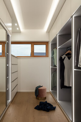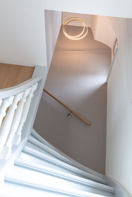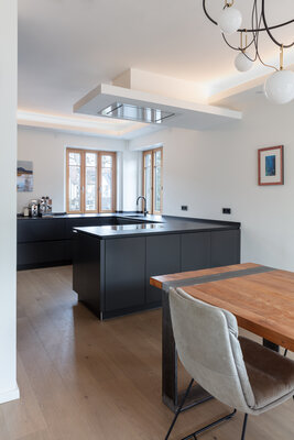 Altes erhalten und passend machen ist nachhaltig. Das Haus erhielt seine Fenster zurück und wurde komplett modernisiert. Der Anbau der Architekten ergänzt das Volumen. Das Gesamtraumkonzept wurde überarbeitet und für die vierköpfige Familie optimiert. Einbauten schaffen Ordnung und schließen Lücken des Bestands. Das Elternschlafzimmer mit Ankleide und Bad geben Raum zum Entspannen. Kinderzimmer und Arbeitszimmer im Altbau wurden zu hellen, ruhigen Räumen. Entstanden ist ein Haus mit viel Leben!