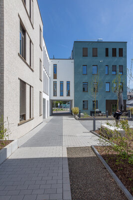 Ein brachliegendes Grundstück im Zentrum Hahns wurde zur neuen Stadtmitte entwickelt. Basierend auf den Wünschen der Bürger entstand ein vielfältiges Quartier mit Wohnungen, Gewerbe und Gastronomie. Die Bebauung passt sich der Umgebung an, bietet aber auch einen viergeschossigen Hochpunkt. Ein Quartiersplatz mit Café und barrierefreie Wege erhöhen die Aufenthaltsqualität. Das Projekt umfasst zudem Büros und ein „Haus der Beteiligung“ und steht im Einklang mit modernen Stadtentwicklungskonzepten.