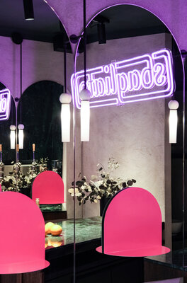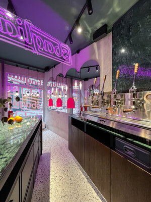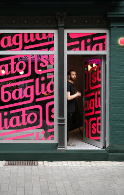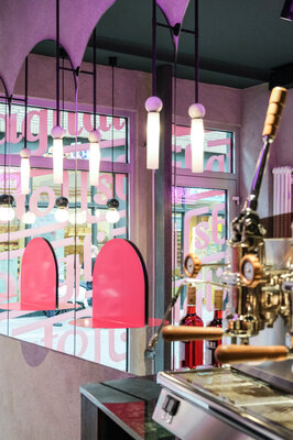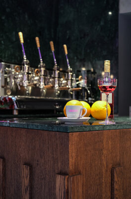 Errichtung einer italienischen Bar – Caffè und Aperitivo – ganz einfach und ohne viel drumherum – wie in Italien. Rein, Espresso, raus. Nur eben nicht in Italien. Klassisch inspiriert, modern interpretiert handelt es sich um eine schnelle, expressive Innenarchitektur die von jedem Standpunkt aus unterschiedlichste Perspektiven auf den Raum ermöglicht. Der Raum weckt durch die geringe Größe ein direktes Kommunikationsbedürfnis, ein Gefühl von Gemeinsamkeit und eine starke Dynamik.