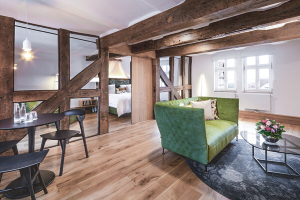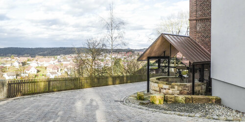 Die kraftvolle Anmutung des Gebäudes mit massiven Natursteinwänden, Eichenholztor und saniertem Turmhelm ist wieder herausgearbeitet worden.