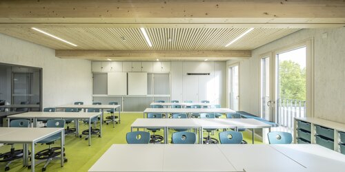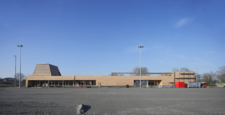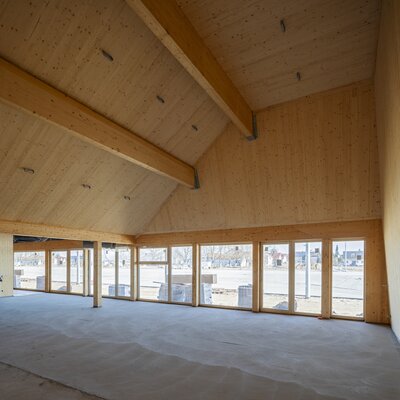 Neubau eines Funktions- und Bildungsgebäudes mit Umkleiden, Seminar- und Betreuungsräumen. Das Gebäude ist nach einem anspruchsvollen energetischen Konzept entwickelt und damit komplett klimaneutral. Der Holzmassivbau wird im Innern durch Lehmwände ergänzt, die das Raumklima ohne technischen Aufwand regulieren. Große Photovoltaikflächen auf dem intensiv begrünten und nutzbaren Dach bieten Verschattung und erzeugen regenerative Energie zum Betrieb.