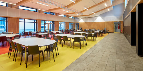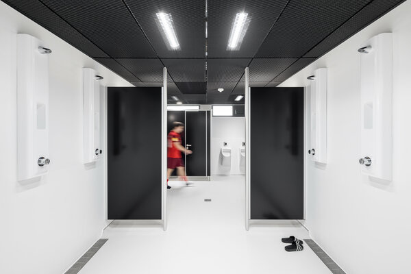 Das Gebäude befindet sich in Eddersheim am Main, einem Stadtteil der Stadt Hattersheim am Main. Das Baufeld ist Teil der örtlichen Sportanlage des Fußballclubs Eddersheim. Die Sportanlage wird durch die Mönchhofstraße erschlossen und liegt am Mainufer. Das Gebäude besteht aus zwei Volumen. Einem Riegel und einem Quader. Der Quader wurde in Stahlbeton-Massivbauweise ausgeführt. Der obere Riegel wurde in Leichtbauweise als Holz-Ständerbau mit einer vorgehängten Lamellenfassade ausgeführt.