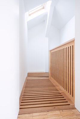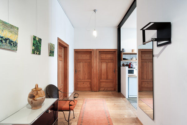 ‚Stadt weiterbauen‘ ist unser Entwurfskonzept für das ‚Stadthaus Elkenbachstraße‘. Das in die Jahre gekommene innerstädtische Wohngebäude wurde für seinen äußeren Erhalt und heutige Anforderungen umgebaut und modernisiert. Dafür wurden die bauzeitlichen Grundrisse mit Flur und abgeteilten Einzelräumen so geöffnet, dass jeweils ein großer offener Koch- und Wohnbereich entstand. Intimere Nutzungen wie Arbeiten, Baden und Schlafen verteilen sich auf die jeweils angrenzenden abgeschlossenen Räume.