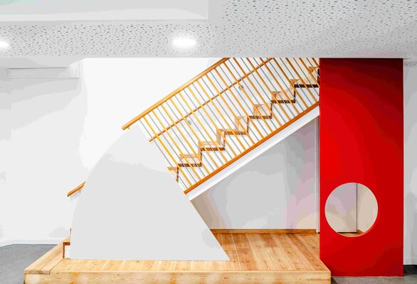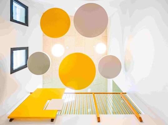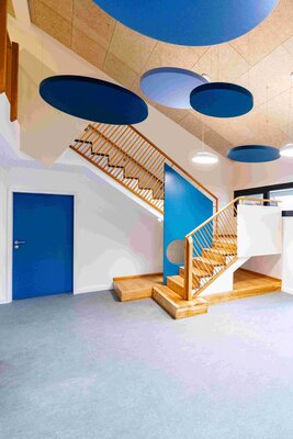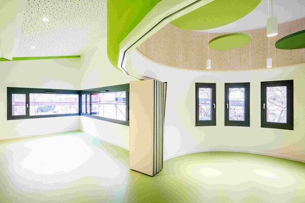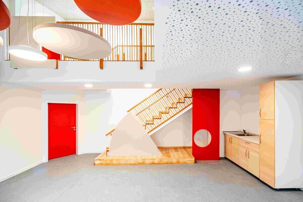 Im Zuge notwendiger Sanierungsarbeiten wurde die 1990 erbaute evangelische Kita energetisch, raumakustisch und sicherheitstechnisch ertüchtigt. Grundmotiv des Gestaltkonzepts war die Synthese zwischen Erhalt und Würdigung des bauzeitlichen Gestaltungsansatzes und Ablesbarkeit aktuell neu implementierter Maßnahmen und Interventionen. Im Ergebnis entstanden zeitgemäße Räume für aktuelle Anfor-derungen frühkindlicher Förderung unter maximalem, ressourcenschonendem Erhalt vorhandener Bausubstanz.