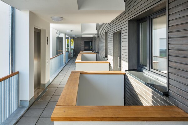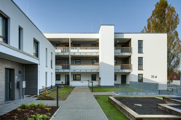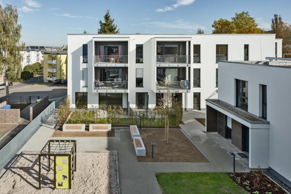 Für ein Unternehmen wurden auf dem firmeneigenen Grundstück in Taunusstein 36 Mietwohnungen geplant. Neben den üblichen Individual-räumen werden auch gemeinschaftlich zu nutzende Flächen für Arbeiten, Hobby, Feste etc. angeboten. Hier wird erstmalig ein in Wohngruppen etabliertes Konzept von einem modernen Entwickler für den Mietwohnungs-bau umgesetzt. Die Baumaßnahme wurde mit Fördermitteln auf KfW 55-Niveau errichtet, die Beheizung erfolgt nachhaltig und effizient über eine Holzpelletanlage.