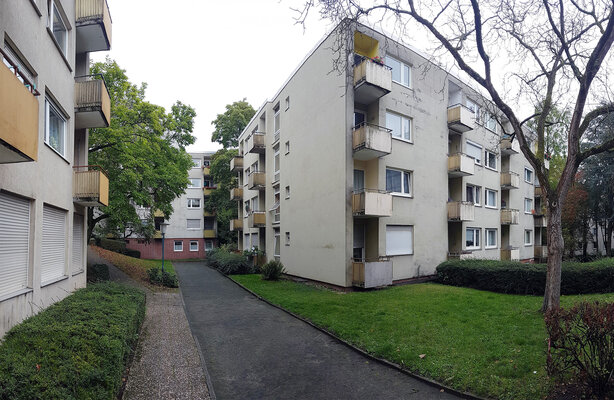 Das Ensemble aus drei Häusern (Baujahr 1963) liegt in Frankfurt-Sachsenhausen und bildet mit seinem alten Baumbewuchs eine grüne Insel im Stadtraum. Die energetische Sanierung erfolgte zum KfW-Effizienzhaus-85 mit Pfad zur Klimaneutralität bis 2045. Saniert wurden Fassaden, Dächer und Fenster; Wärmepumpen und Solarthermie neu installiert. Für die Nachhaltigkeitsziele wurden Müll und CO₂ eingespart, indem Materialien wiederverwendet oder eingespart wurden. Die hochwertige Außenanlage blieb erhalten.