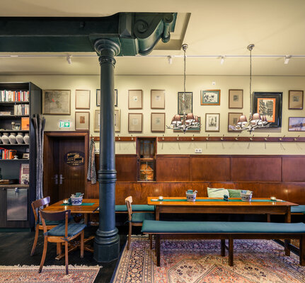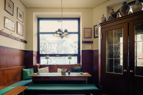 Das Apfelwein-Lokal steht am Rand der vernachlässigten „echten Frankfurter Altstadt“. Im Erdgeschoß des Fünfgeschossers ist der Eigentümer mutig genug, die mehrere Jahre brachliegende Traditionsgaststätte unmittelbar nach Corona wieder zu eröffnen. Einbauten der 1970er-Jahre werden zurückgebaut, die Struktur von 1898 hergestellt. Die authentische Einrichtung wird lediglich gereinigt. Der technisch aufgerüstete Ort erhält durch die Innenausstattung des Pächters eine Wohnzimmeratmosphäre.