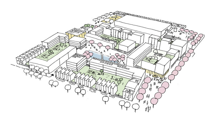 | Objekt | Vier Höfe - ein Quartier, das verbindet, Adam-Opel-Straße, 65428 Rüsselsheim am Main |