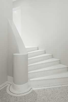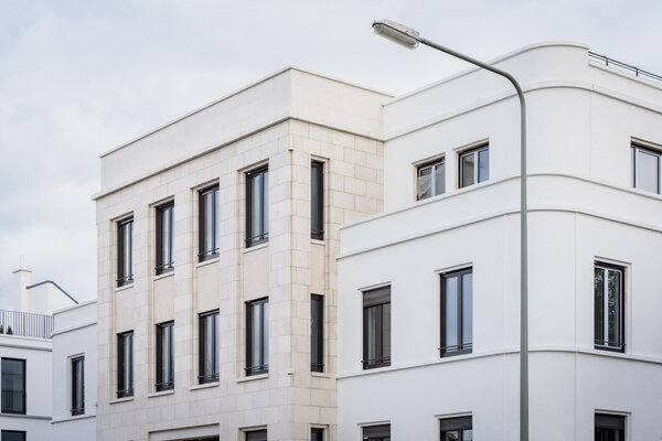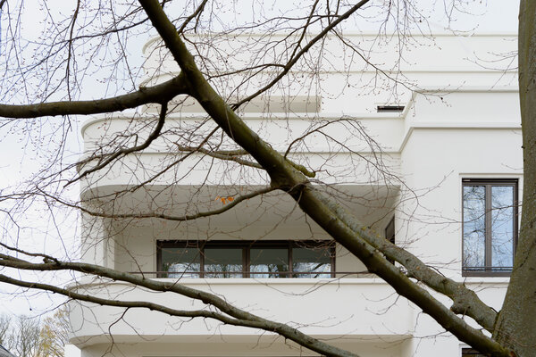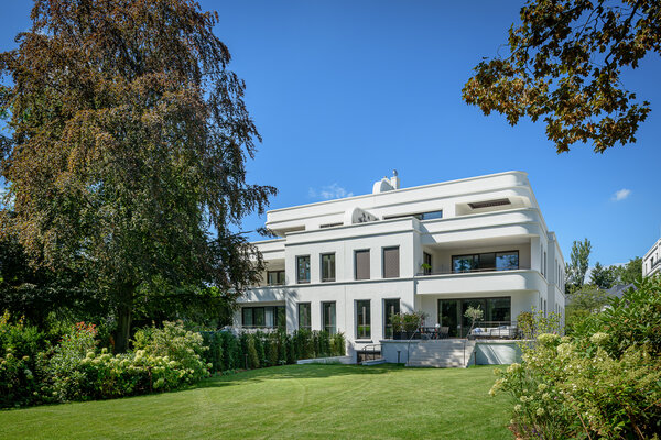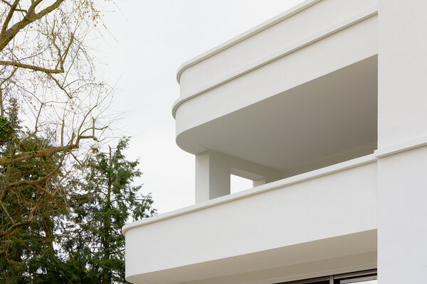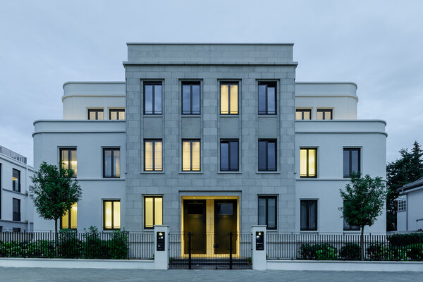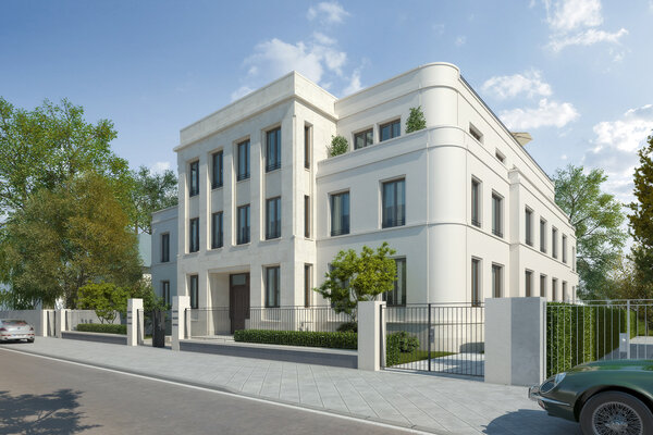 Im Sinne der Bestimmungen des Ginnheimer Höhenvertrags sind auf den beiden Grundstückshälften zwei spiegelsymmetrisch gestaltete Haushälften geplant, die sich in ihrer Gesamterscheinung zu einem harmonischen Ganzes ergänzen. In ihrer Maßstäblichkeit und Baukörpergliederung fügen sich die Neubauten nahtlos in das von Vorkriegsbauten geprägte villenartige Umfeld ein, dessen Formensprache der Neubau zeitgemäß transformiert.