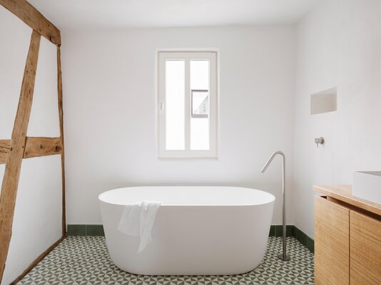 Im Rahmen der Sanierung eines ortstypischen, allerdings verputzten, historischen Fachwerkhauses wurde, unter Verwendung nachhaltiger, biologischer sowie ökologischer Baustoffe neuer Wohnraum für 2 Familien geschaffen.
