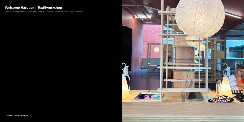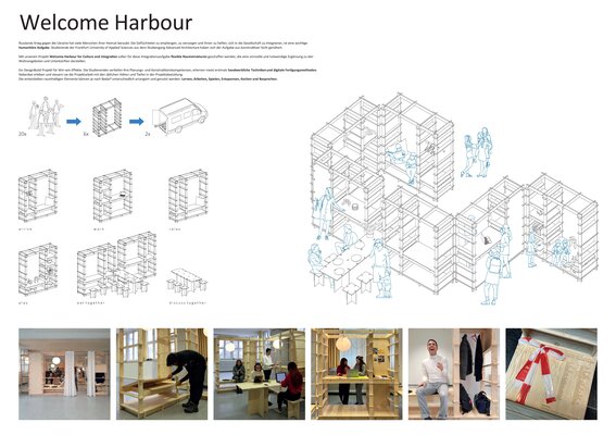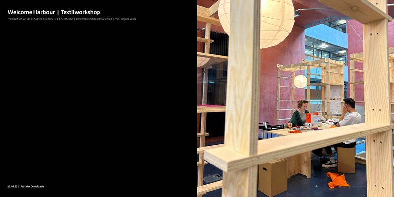 Studierende der fraUAS, arbeiteten im Rahmen eines Moduls im englischsprachigen Master Advanced Architecture, intensiv an der Entwicklung und Umsetzung des Design Build Projekts „Welcome Harbour For Culture and Integration“.