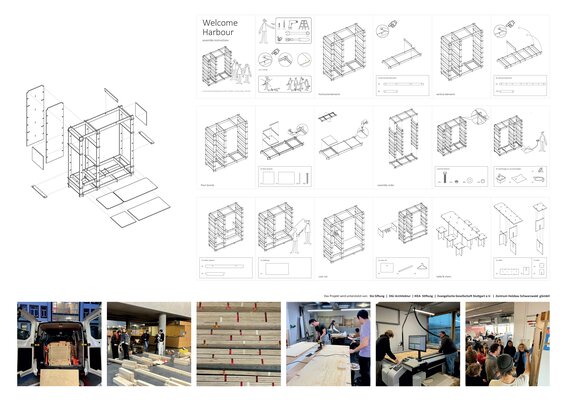 Ressourcenschonend, transportoptimiert, nutzungsflexibel und lehrreich, dass sind die Ziele. Das Ergebnis ist eine in 1:1 gebaute Konstruktion die Menschen einlädt, diese für allerlei gemeinsame soziale Aktivitäten zu nutzen. Der Harbour (k)reist an unterschiedliche Orte.