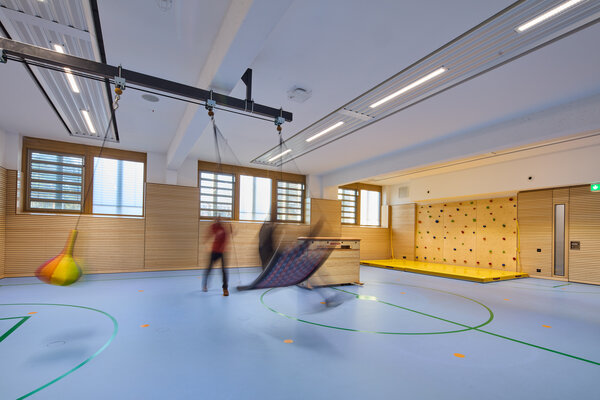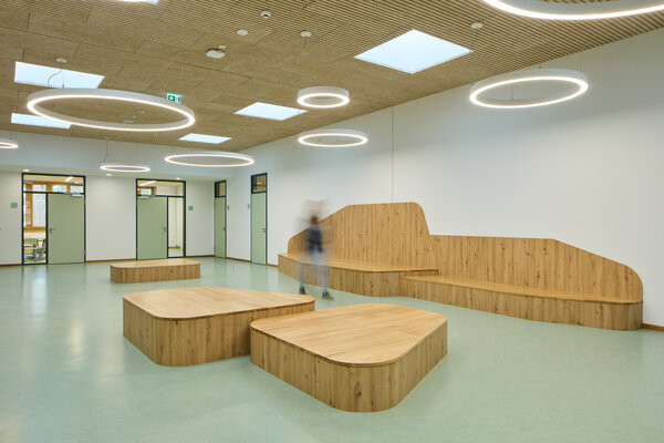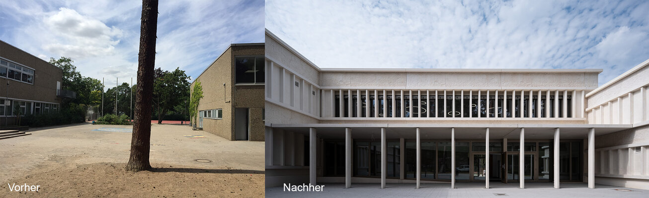 Die Wilhelm-Hauff-Schule, eine zeittypische Betonfertigteilschule der 1970er-Jahre, wurde umfassend saniert und energetisch modernisiert. Ein Neubau verbindet die ehemals getrennten Bauteile und schafft einen barrierefreien Haupteingang. Neue Ganztagesbereiche, eine Mensa, Aula und Sporthalle ergänzen das Raumangebot. Außenanlagen mit Terrasse und Schulgarten fördern ein zeitgemäßes Lernumfeld.