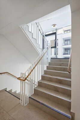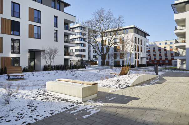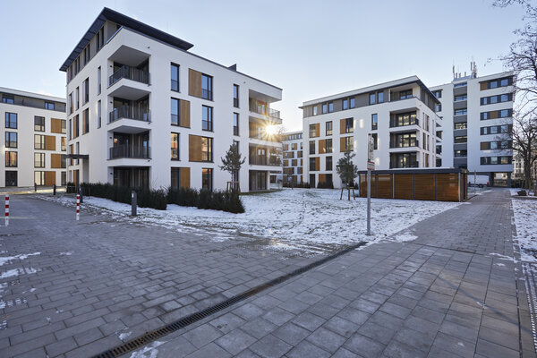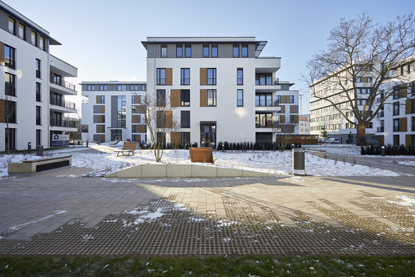 Auf einem ehemaligen Verlagsgelände entstand ein neues lebenswertes Wohnquartier, das mit einer überzeugenden Maßstäblichkeit auf das Umfeld reagiert. Die 8 Mehrfamilienhäuser, das umgenutze Verlagshaus und das Parkhaus werden durch eine einheitliche Fassadengestaltung harmonisch verbunden und fügen sich in die hochwertige und differenzierte Außenraumgestaltung ein. Spannungsvolle Blickbeziehungen und durchdachte Details in der Architektur und Freiraumgestaltung zeichnen das Projekt aus.