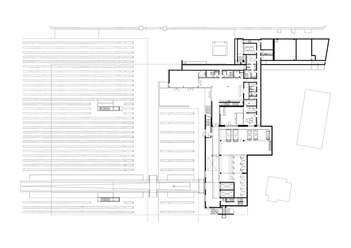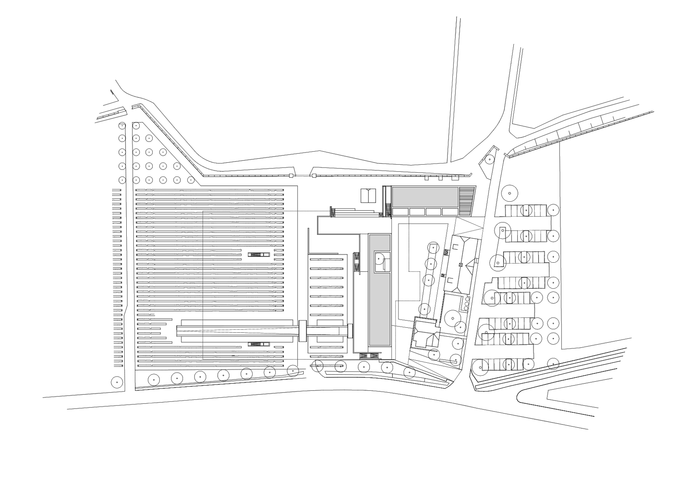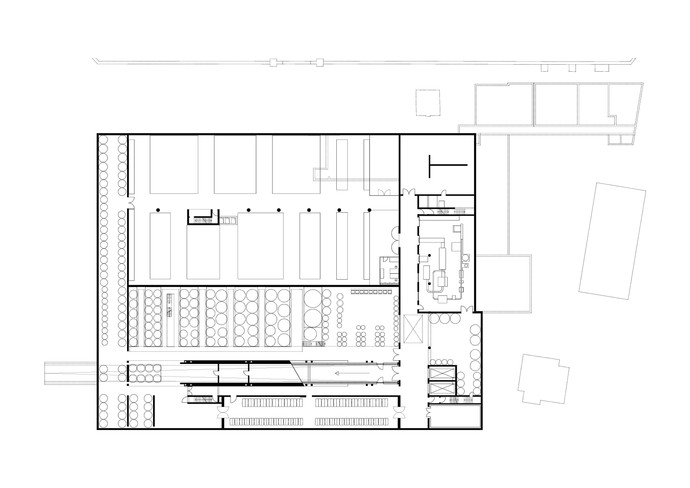 Die beiden Neubauten, bestehend aus Sekt- und Weinkellerei sowie einem multifunktional bespielbaren Betriebsgebäude, bilden mit den Bestandsbauten der Alten Schmiede, dem Wohnhaus und der alten Rebveredelungshalle, ein in seinen Produktionsabläufen aufeinander abgestimmtes Ensemble. Auf der neu gestalteten Hofanlage, der sogenannten „Weinpiazza“, finden alle Aktivitäten des Weinbaus – von der Einbringung der Trauben bis zum Weinfest – statt. Von der Weinpiazza werden alle Einzelgebäude erschlossen.